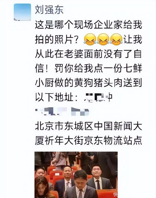 一个是把京东做到行业前列的企业家,一个是从“奶茶妹妹”蜕变成女强人的代表,俩人差了十几岁,从在一起那天起,他们的婚姻就没少被讨论。 所以,因为几张照片,“婚变”的传言就出来了。 直到48小时后刘强东一条朋友圈出来,才把谣言破了,还意外曝了自己在老婆面前的“小小心态”。 刘强东朋友圈自嘲回应:称“在老婆面前没了自信” 刘强东那条的朋友圈,还挺接地气的,就直接晒了那张引发争议的合照,配文特实在:“这是哪个现场企业家给我拍的照片?让我从此在老婆面前没有了自信”。